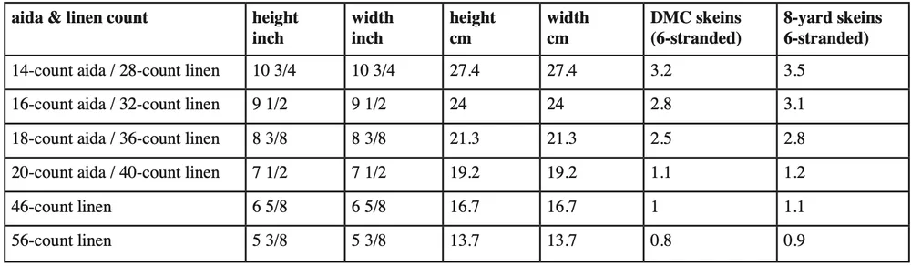 14 count:10.8" × 10.8"/ 27 × 27 cm
