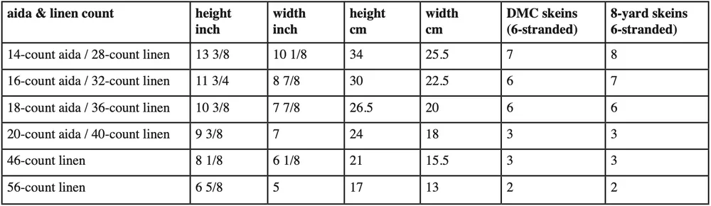 14 count:10.1" × 13.4"/ 26 × 34 cm