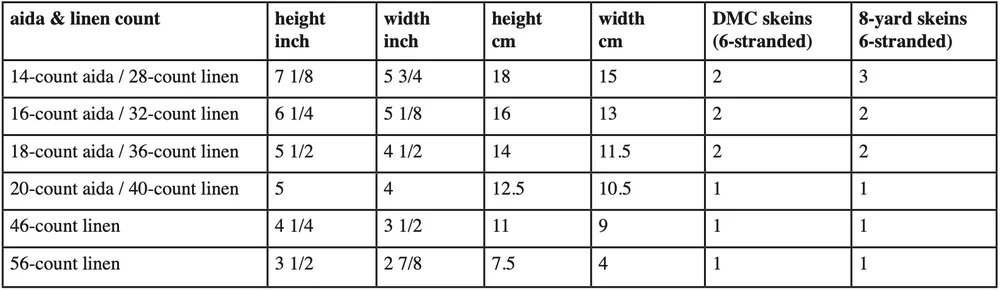 14 count:5.8" × 7.1"/ 15 × 18 cm