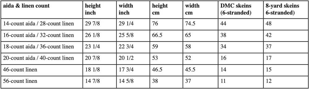 16 count:25.6" × 26.1"/ 65 × 66 cm