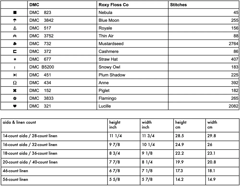 22 count:7.5" × 7.1"/ 19 × 18 cm