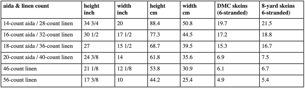 32 count:8.8" × 15.2"/ 22 × 39 cm