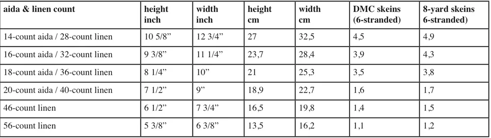 16 count:11.2" × 9.3"/ 28 × 24 cm