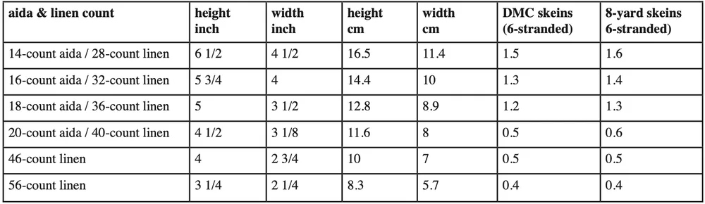 16 count:3.9" × 5.7"/ 10 × 14 cm