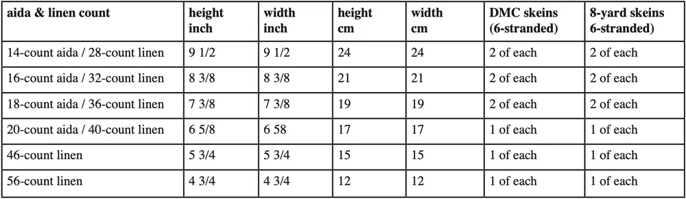 14 count:9.5" × 9.5"/ 24 × 24 cm
