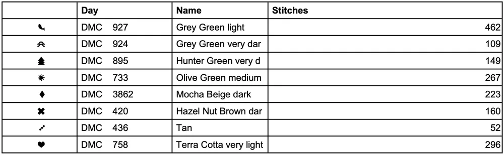 36 count:3.2" × 2.1"/ 8 × 5 cm