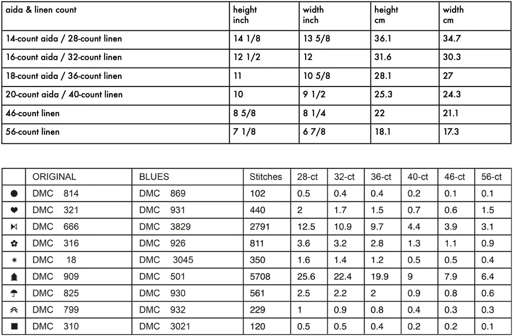 14 count:13.6" × 14.2"/ 35 × 36 cm