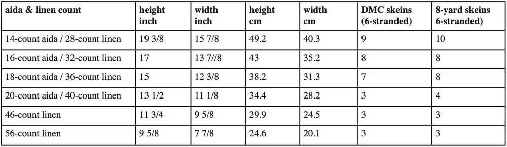 32 count:8.5" × 6.9"/ 22 × 18 cm