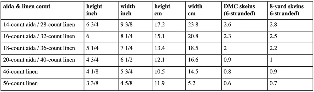14 count:9.4" × 6.8"/ 24 × 17 cm