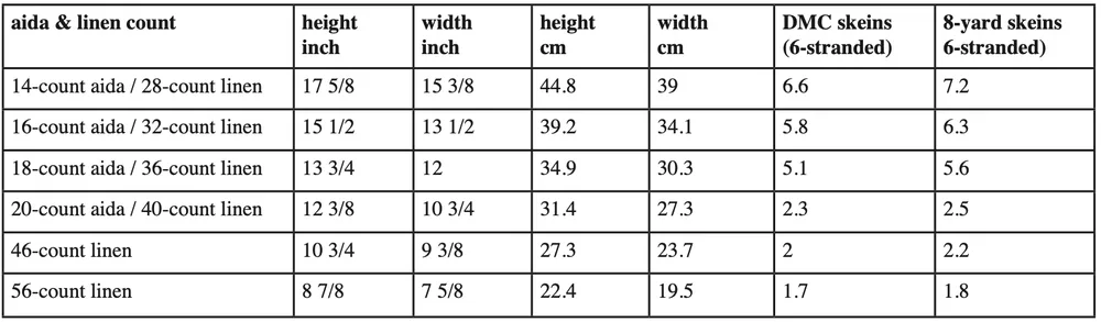 14 count:15.4" × 17.6"/ 39 × 45 cm