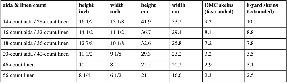 14 count:13.1" × 16.5"/ 33 × 42 cm